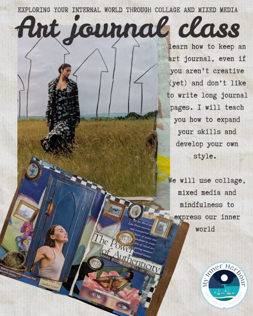 If you need to work with a budget option (dollar tree) or have something you already own I can show you techniques to deal with thinner papers or how to deal with a notebook bursting at the seams. If you know a specific theme or topic you would like to focus on during the course, you can come with a brainstorm or come with an open heart to hear what you’re subconsciously holding inside.