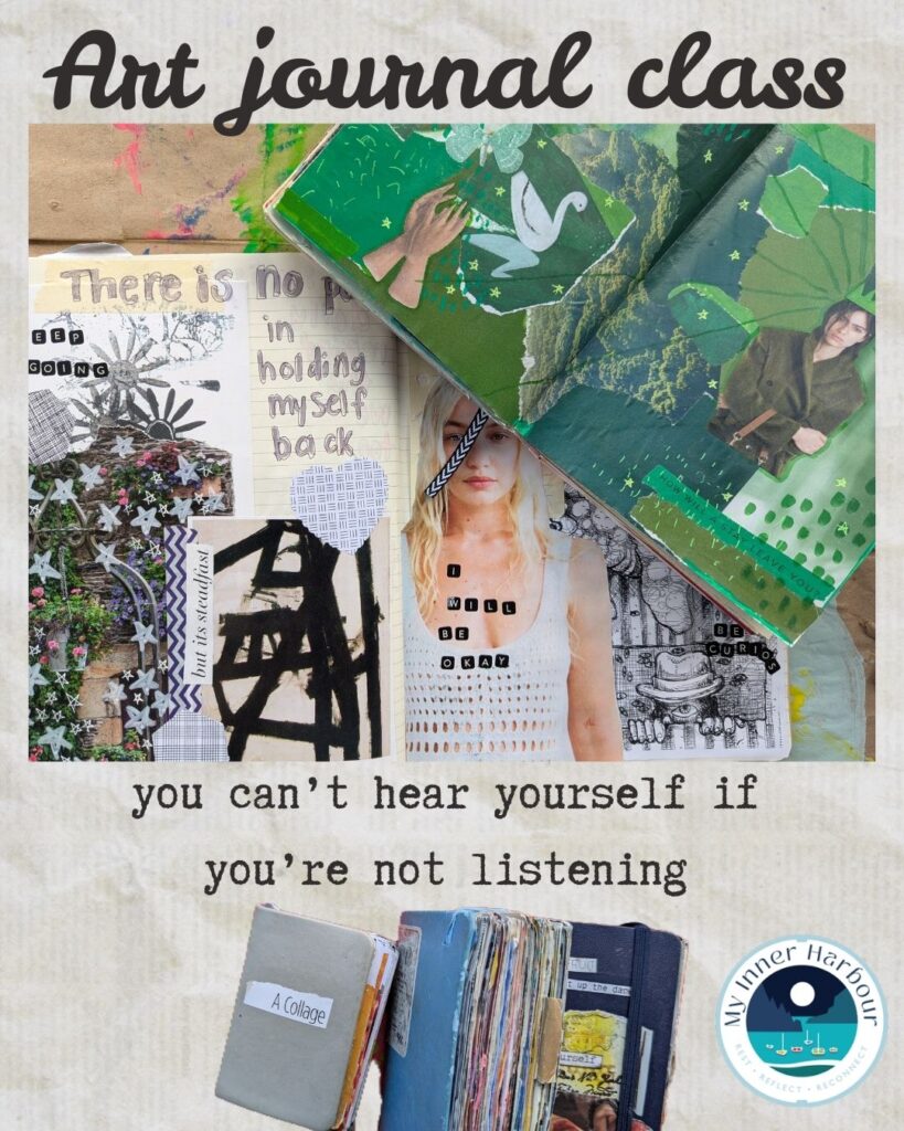 Life is a beautiful and complicated experience and sometimes it can be hard to process it all. Art journaling is one tool we can use to express and unravel the layered inner world we all have. There is a story you are telling yourself as you go through life, woven from past experiences and internal voices. This can change how you perceive yourself, the choices you make and even the person you may believe you are. You are the one writing your story and you have the power to re-write it. It starts with hearing yourself, making space and time to listen.